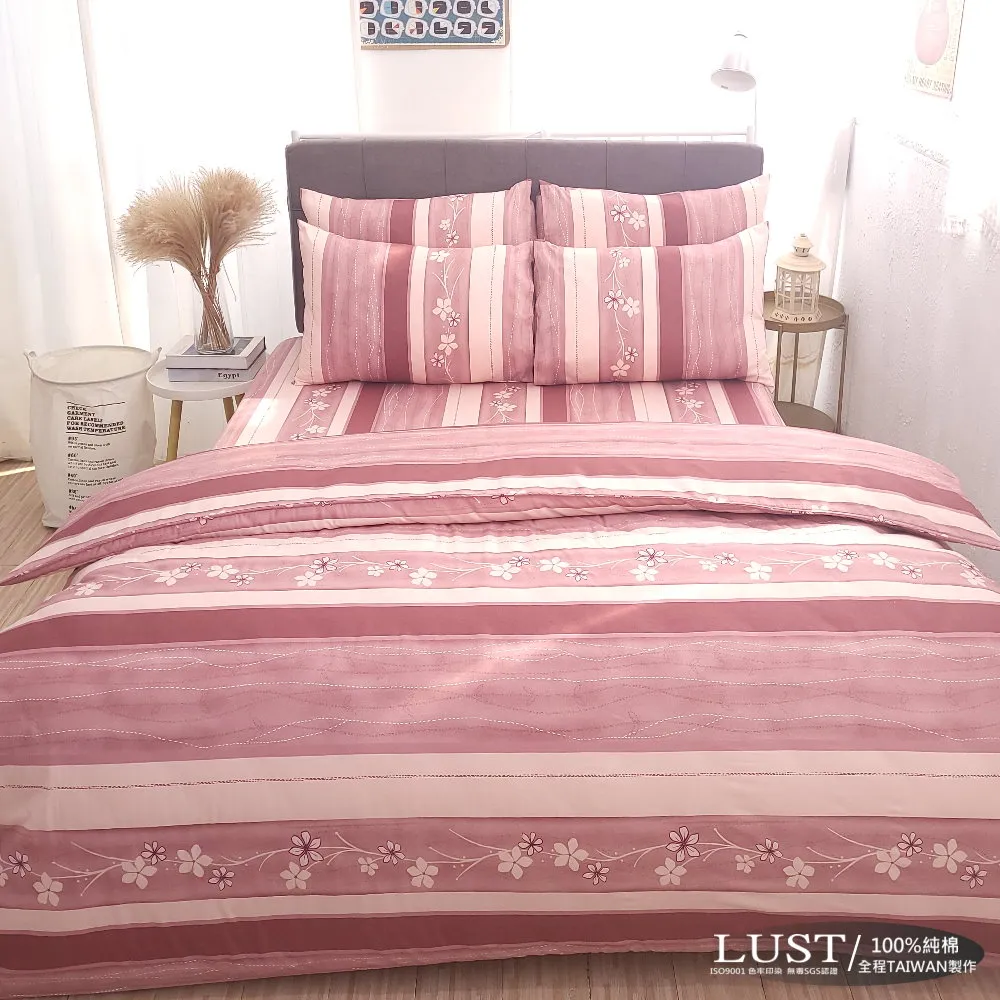 LUST寢具【楓日花語-粉】100%精梳純棉單人3.5尺床包/枕套組